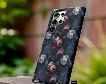 Moody Floral Phone Case: Gothic Academia Style, Dual Layer Tough Case